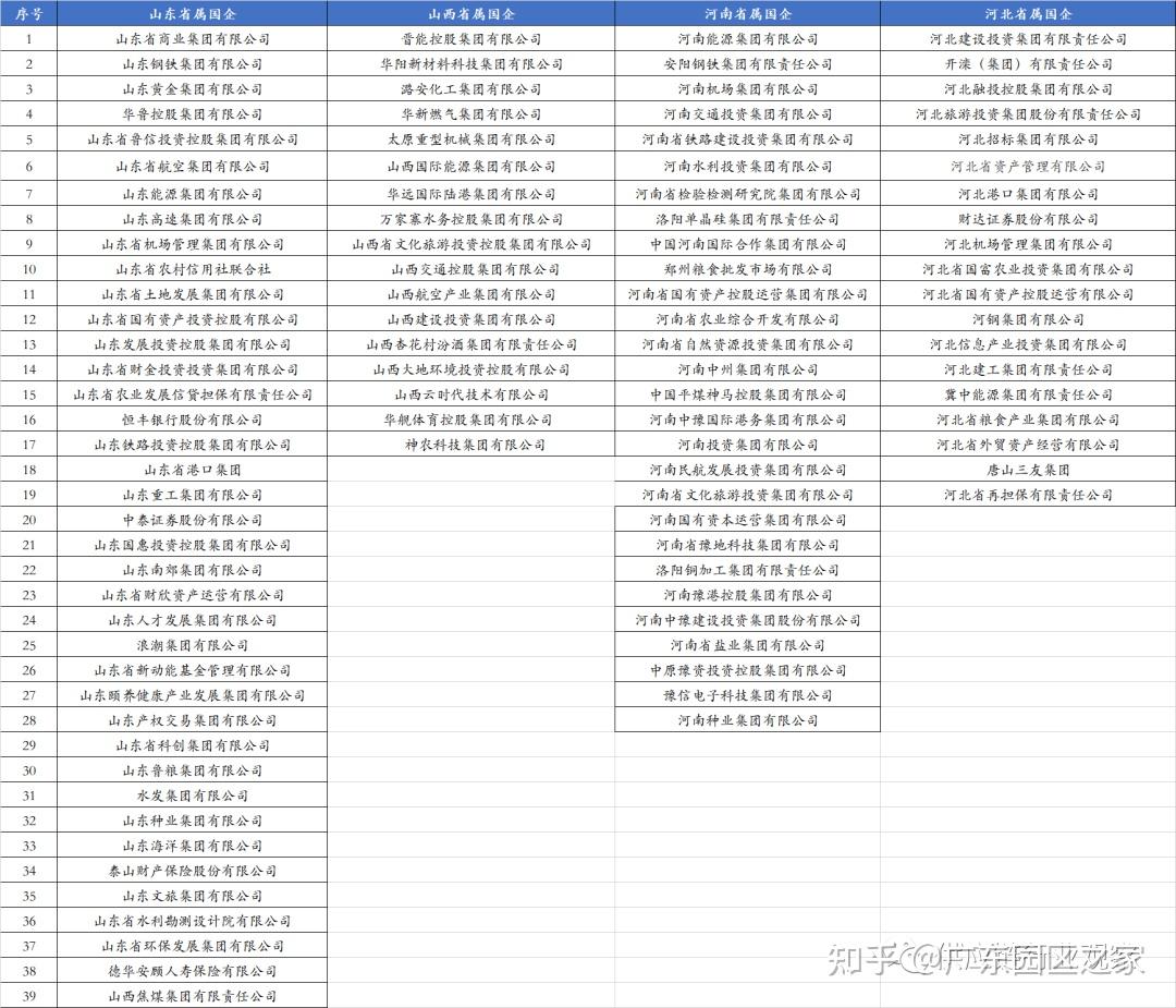 根據各地國資委披露的監管企業名錄,山河四省共有省屬國企103家,數量上占全國比重的16%左右。其中,山東省屬國企38家、山西省屬國企18家,河南28家,19家。具體名錄如下,下表山西焦煤應為山西省屬國企:
