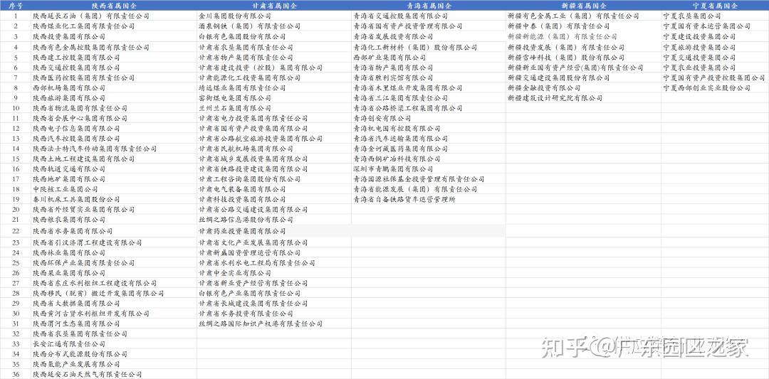 西北5省分別為陜西、甘肅、寧夏、新疆和青海。西北5省共擁有103家省級國企,其中陜西數量最多36家、甘肅31家、青海19家、新疆9家、寧夏8家。