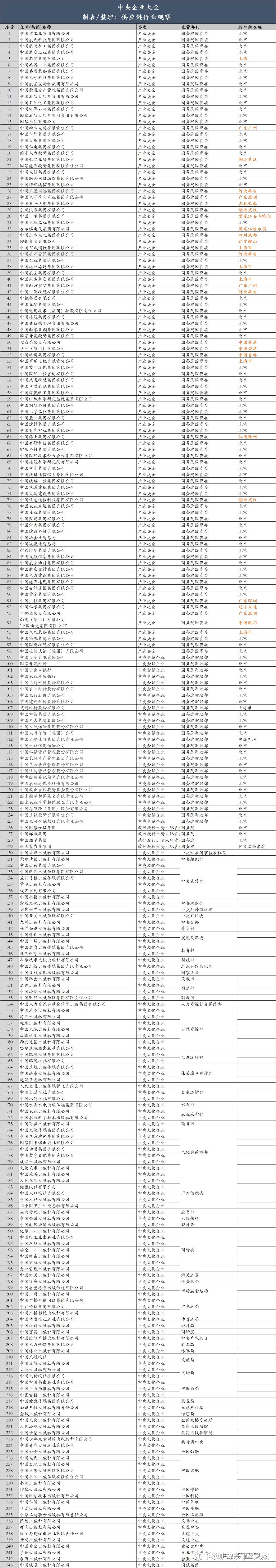 中國最全央企名錄及其行政級別劃分!(243家央企和665家省屬國企)